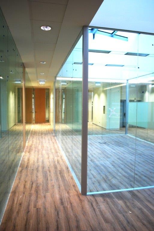 In collaborazione con lo studio Impre.do, sistema di partizione ufficio, tramite la linea TIME della Newall. Profilo esile, leggero, con sistema porte a filo lucido. Vetro stratificato 5.5.1.