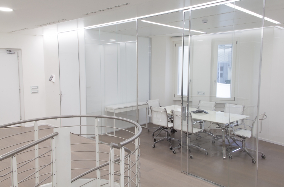 Pareti divisorie, controsoffitto, illuminazione, condizionamento e pavimento convivono in sinergia per migliorare la flessibilità degli spazi di lavoro.