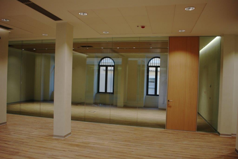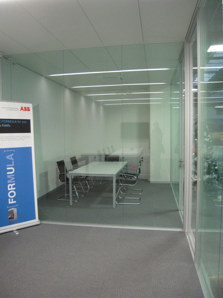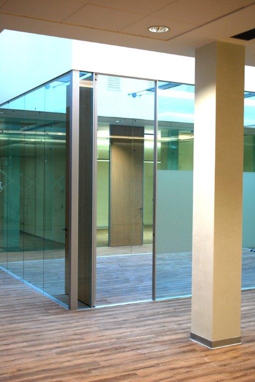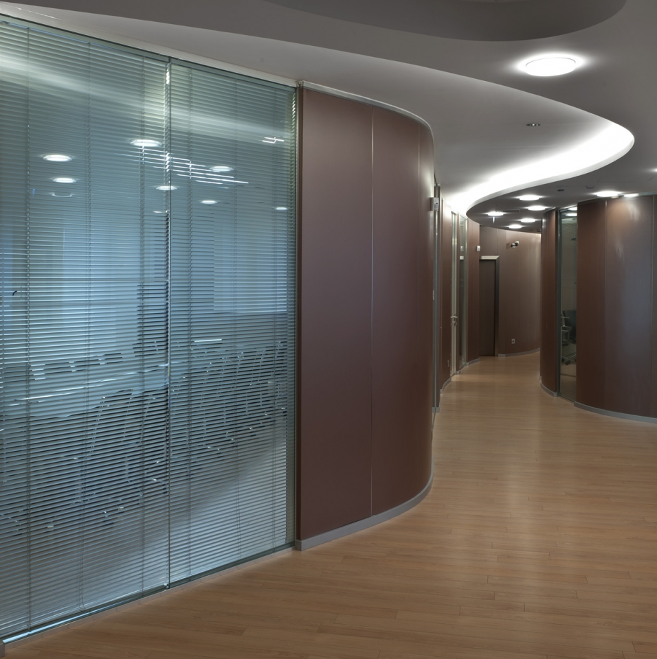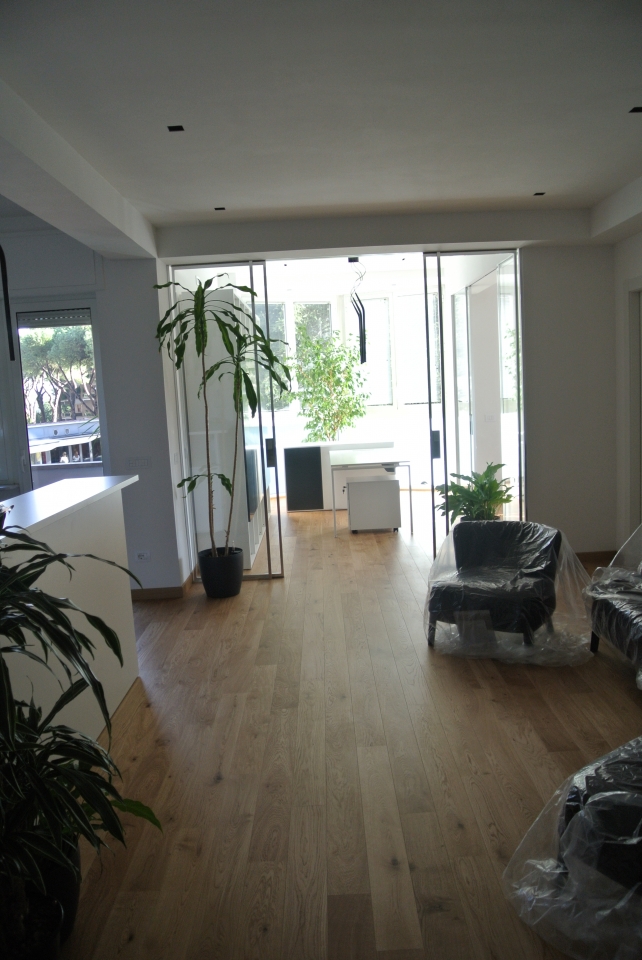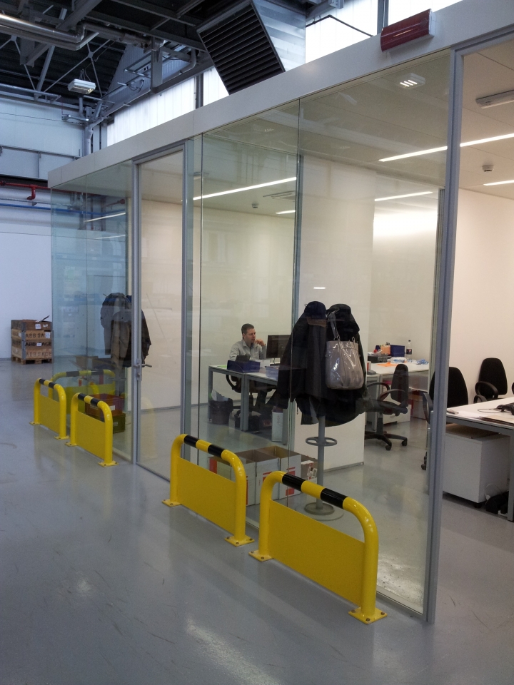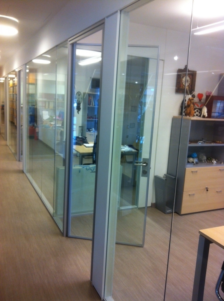 In collaborazione con lo studio Impre.do, sistema di partizione ufficio, tramite la linea TIME della Newall. Profilo esile, leggero, con sistema porte a filo lucido. Vetro stratificato 5.5.1.